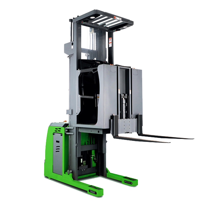 Electric middle level order picker provides safety and high efficiency order picking for middle racked warehouse.